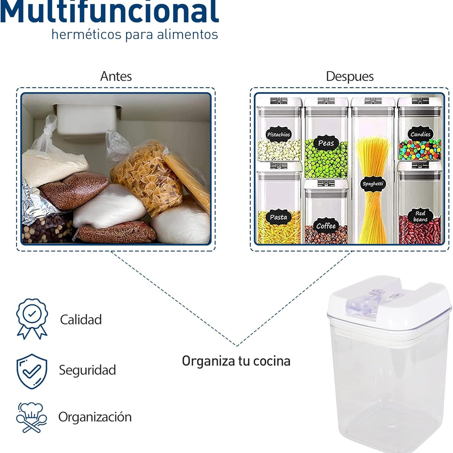 🔹 Multiusos: Perfectos para almacenar harina, azúcar, arroz, cereales, galletas, café, pastas y hasta líquidos como agua, jugo o sopas.